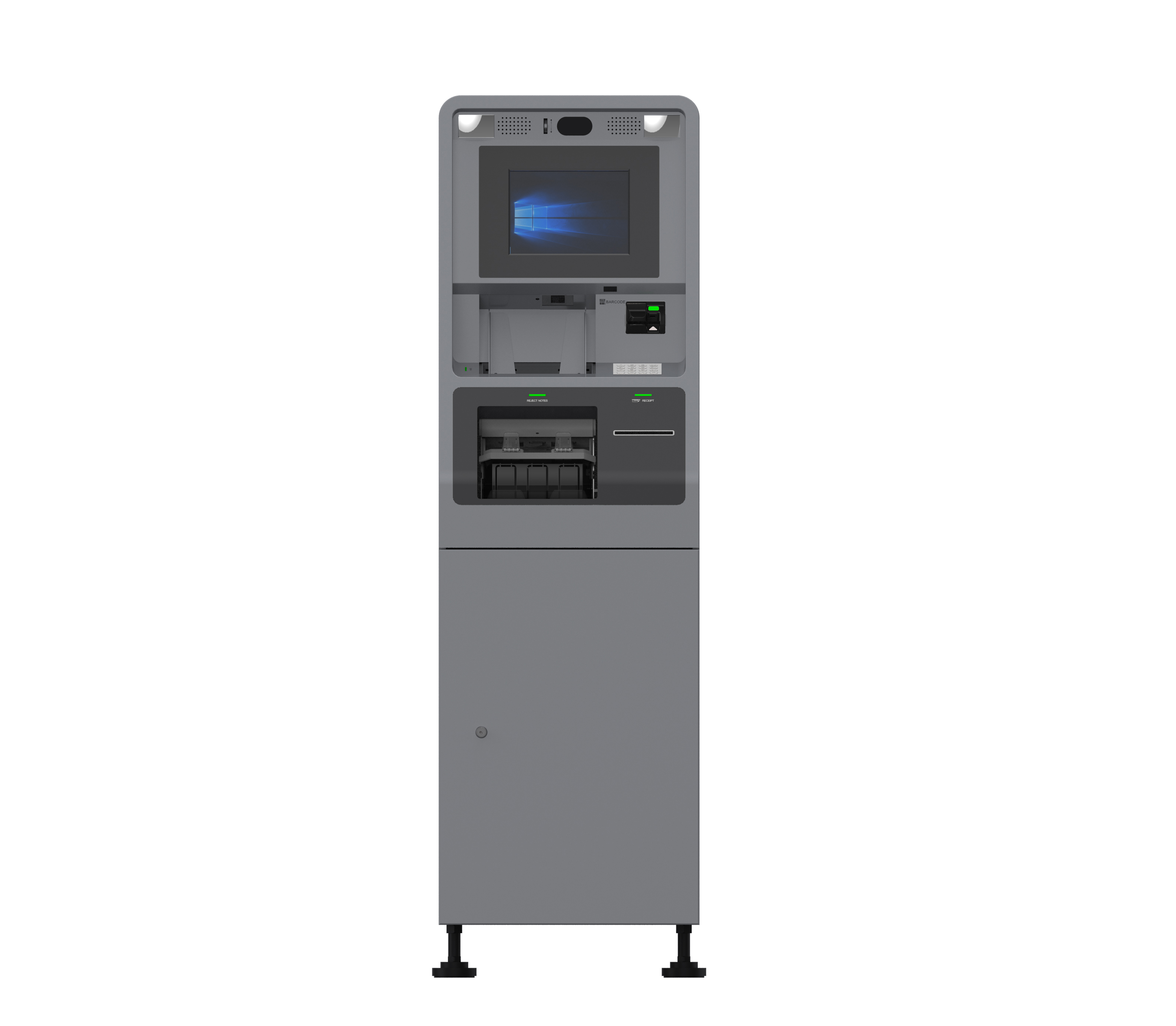 存取款一体机包括主控模块、操作屏、读卡器模块、凭条打印、现金模块等模块,支持在网点环境下,现金存取款、冠字号记录、查询、转账、改密、射频卡(充值、存取款)功能、存折处理,可扩展DVR监控、生物识别、身份证识别、条码扫描、多媒体广告等功能。采用自主研发的循环机芯,具有大容量出、入钞口设计及大容量钞箱设计,具备远程自动清机加钞功能,机芯性能已达到自主研发品牌领跑者。